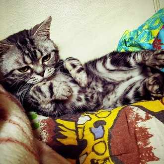 布団の上でおっぴろげ 猫たちの写真日記