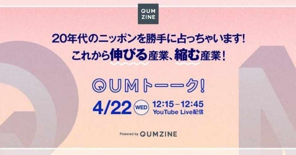 4月22日 水 オンラインイベント開催12 15 12 45 年代のニッポンを勝手に占っちゃいます これから伸びる産業 縮む産業 Qumトーーク Qumzine By Filament Inc