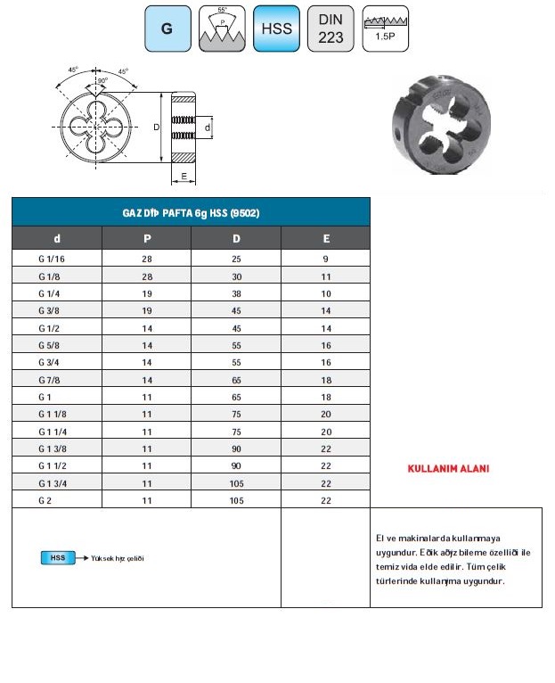 G Boru Dis Pafta G 1 4 19 Hss