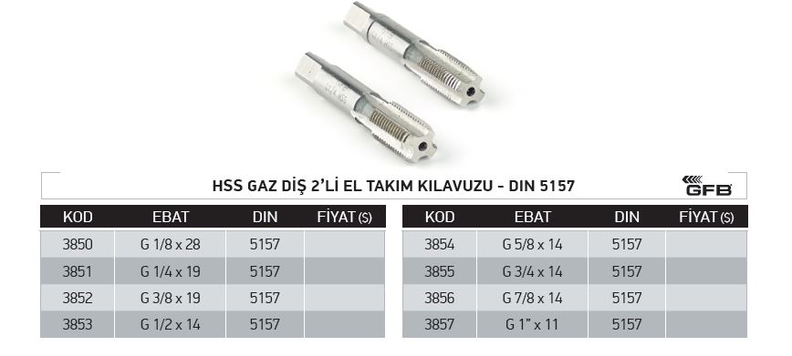 Hss Gaz Dis 2 Li El Takim Klavuzu Din 5175 G 1 4 X 19