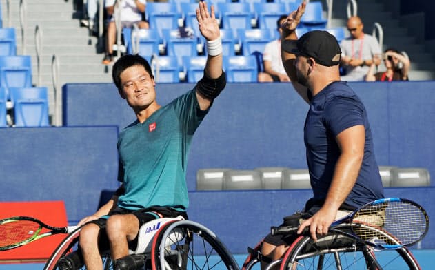 国枝 ダブルスで優勝 楽天opテニス車いすの部 写真 共同 日本経済新聞