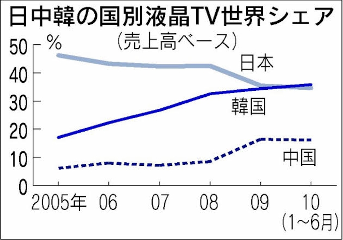 韓国勢 液晶tv世界売上高で初のシェア首位 日本経済新聞