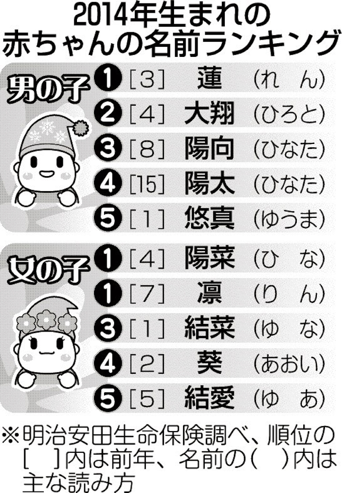 14年生まれの子どもの名前 蓮 陽菜 凛 が1位 リセマム