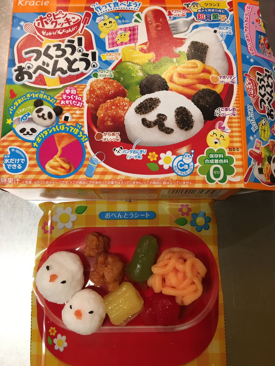 見た目はしっかり お弁当 知育菓子 つくろう おべんとう でパンダ弁当作ってみた ソーダ味のおにぎりにオレンジ味のからあげ えん食べ
