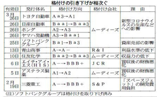 日本企業 格下げ相次ぐ 新型コロナで収益性低下 日本経済新聞